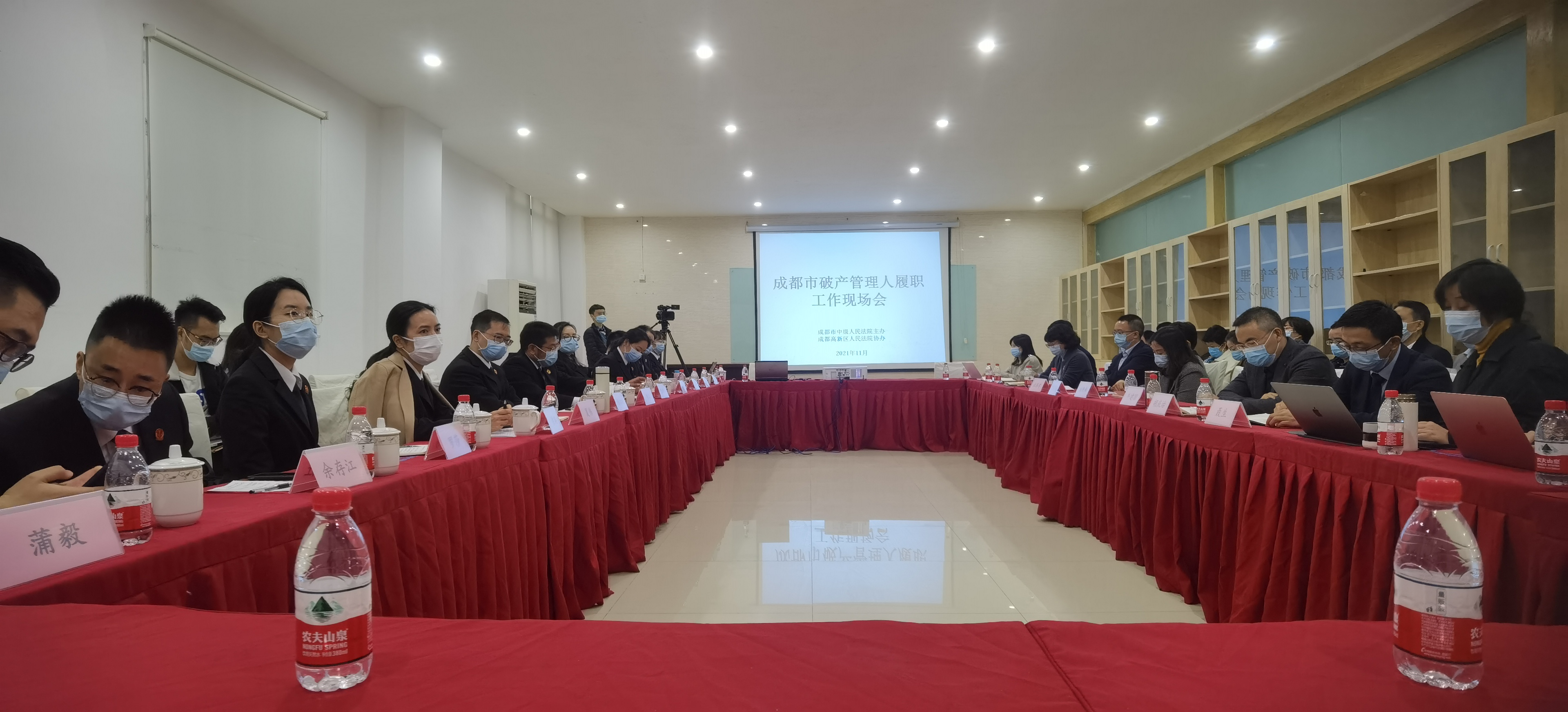 今天上午成都破产法庭庭长陈兵在破产项目西南医用设备有限公司厂区主持召开全市管理人工作座谈会。