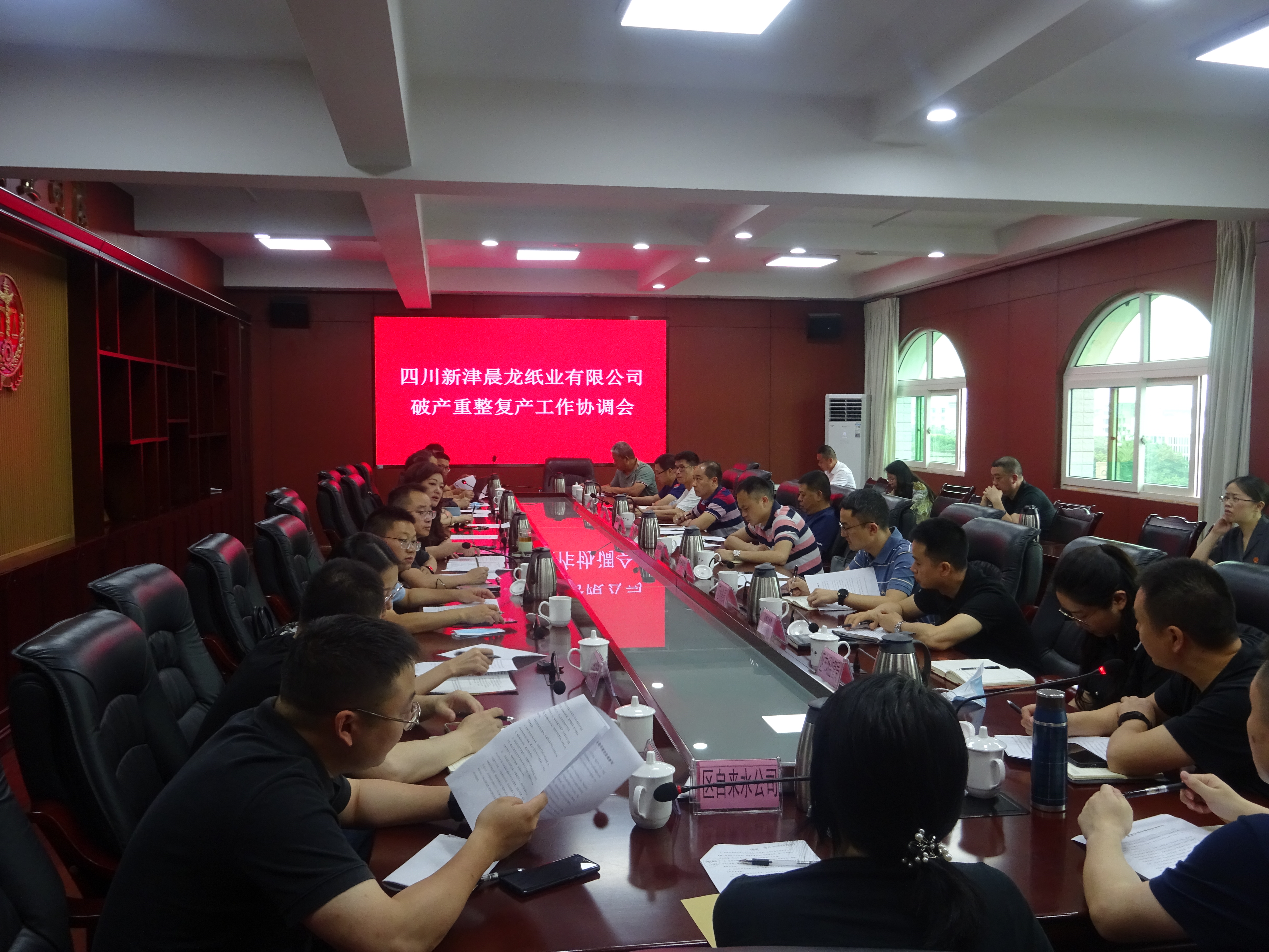 应中选投资人、托管人的请求,就复产复工许可事项及水电气恢复供应等问题,新的一周伊始,今天上午成都市新津区委政府区法院在法院机关五楼大会议室专题召开了晨龙纸业破产重整复产工作协调会。托管人、管理人以及债权人代表出席汇报有关需求,环保、发改等相关政府部门以及水电气排污等供应单位负责人悉数到会。会议由区法院主持,区委常委、统战部长叶尚敏,区法院党组书、院长王强,专委李静等出席。