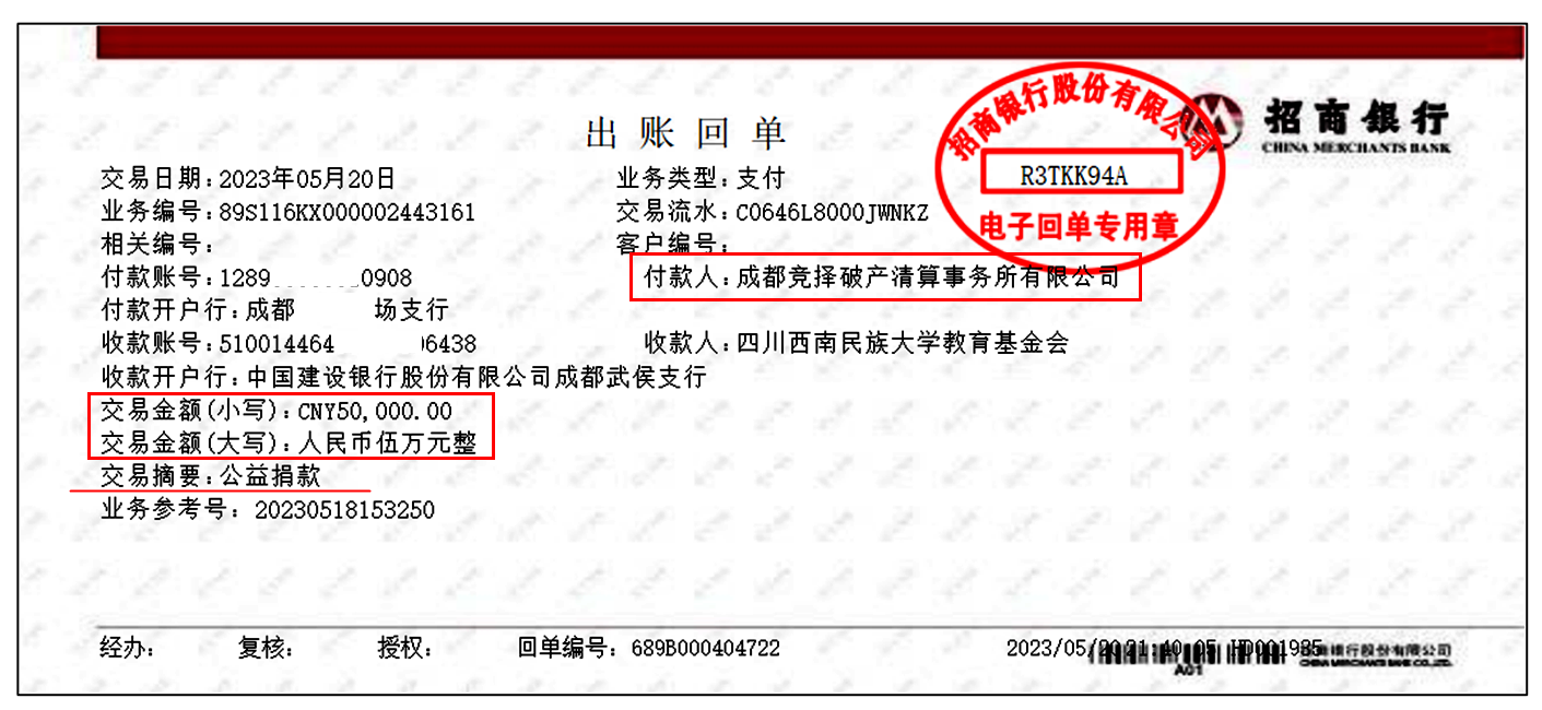 竞择破产团队再次向西南民族大学捐赠5万元