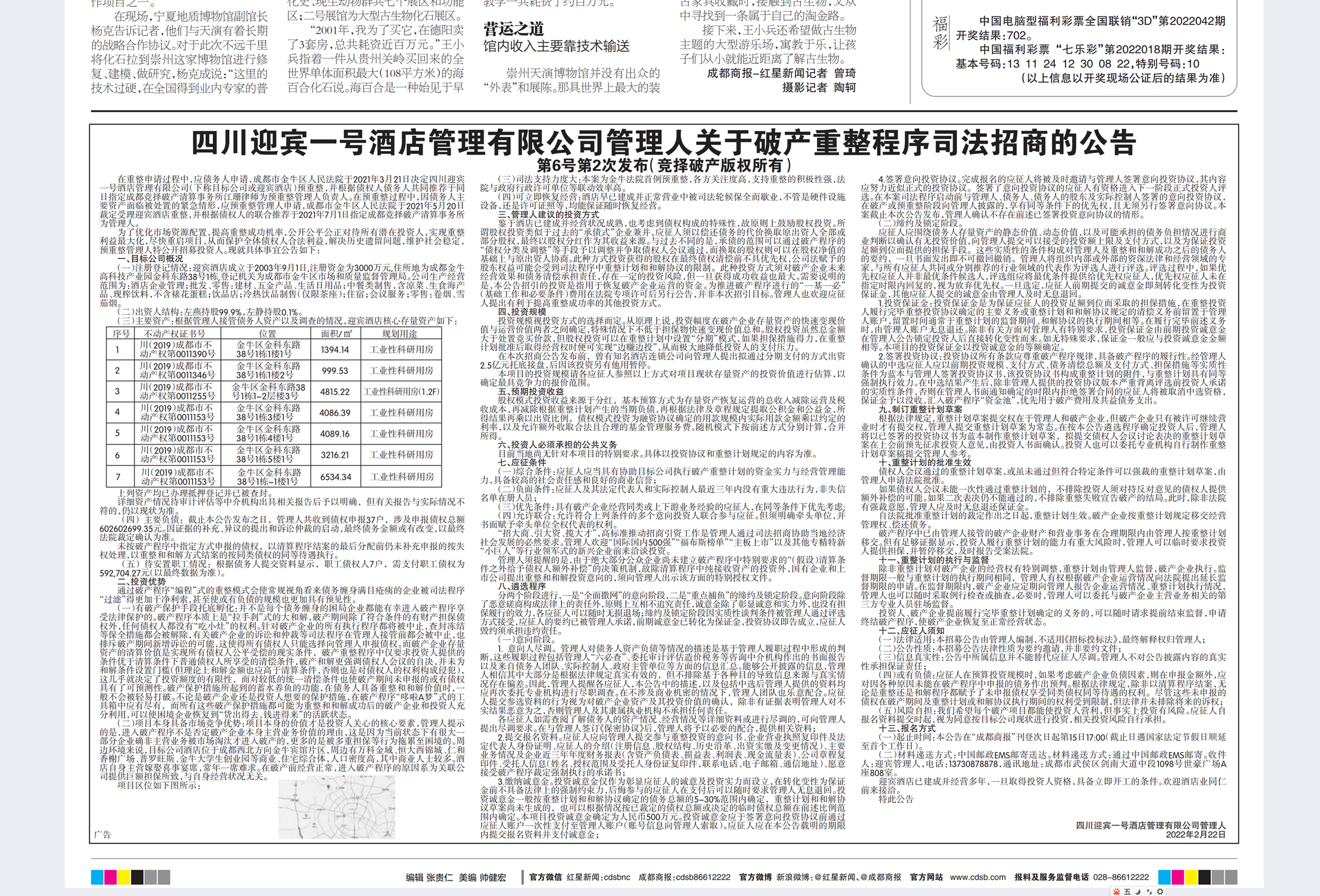 本公告在“成都商报”刊登次日起第15日17:00(截止日遇国家法定节假日顺延至首个工作日)。
