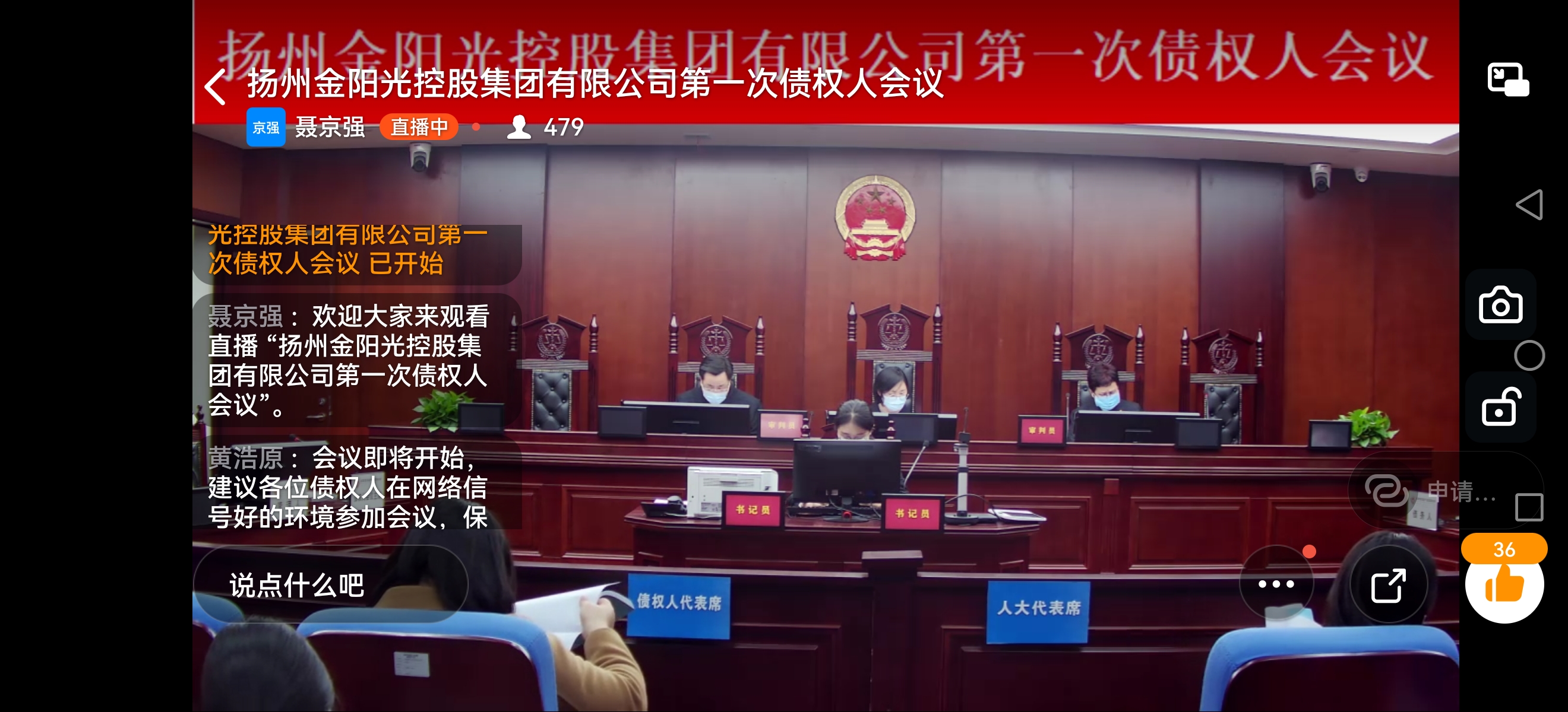 根据事前公告,今天(31)下午扬州金阳光控股集团有限公司第一次债权人会议在江苏省扬州市邗江区人民法院第11法庭以“现场+线上”方式召开。由于本案在当地的影响,法院还邀请了10名人大代表列席监督。