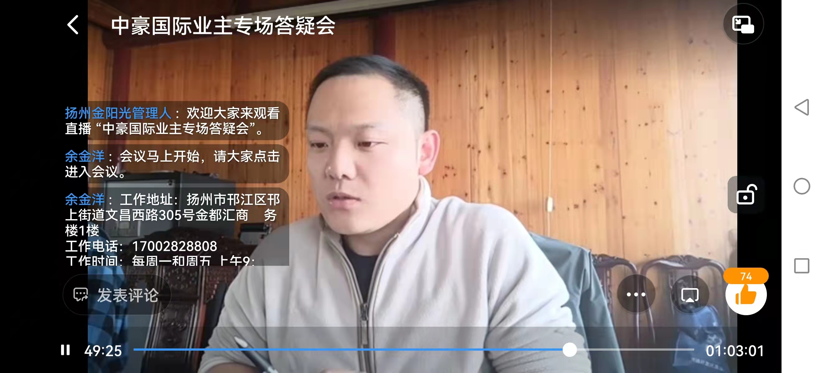 针对前期扬州金阳光控制集团有限公司仪征分公司开发的“中豪国际”业主债权申报中的疑问,今天扬州金阳光管理人通过钉钉APP在线召开了业主答疑会议,会议持续1小时2分,共有750名债权人在线。管理人现场负责人、成都竞择破产清算事务所律师董新宇在线通过视频回答了业主们关心的问题,此次答疑会议的召开对于春节敏感期稳定业主情绪有较好的促进作用。