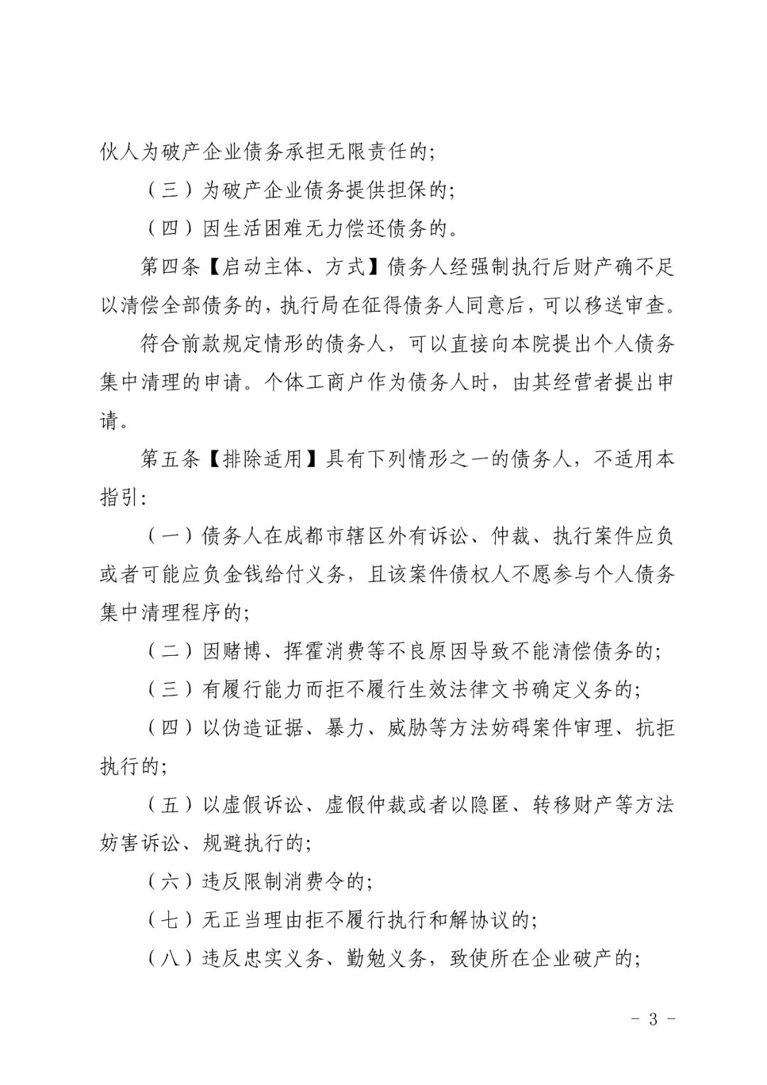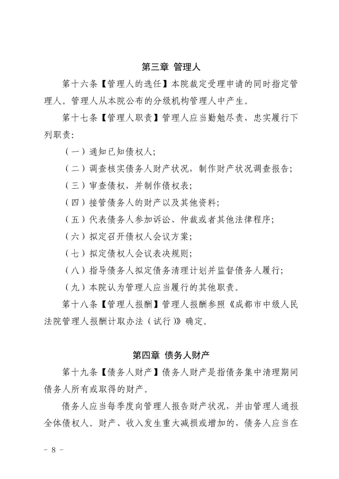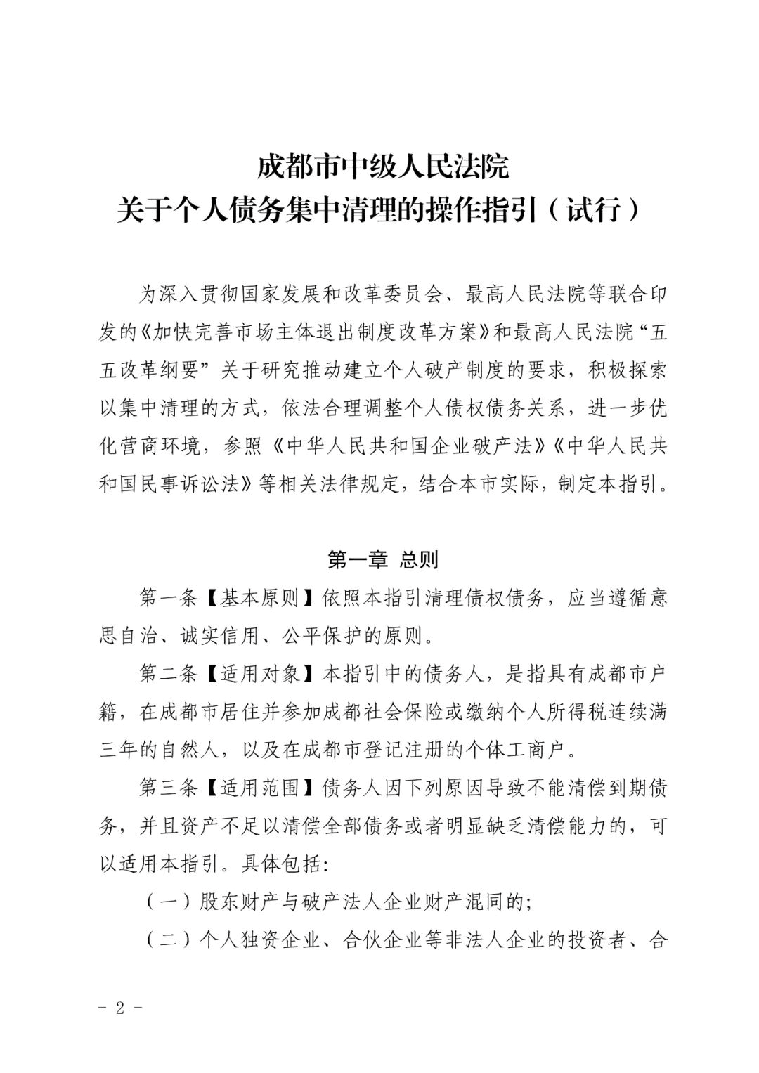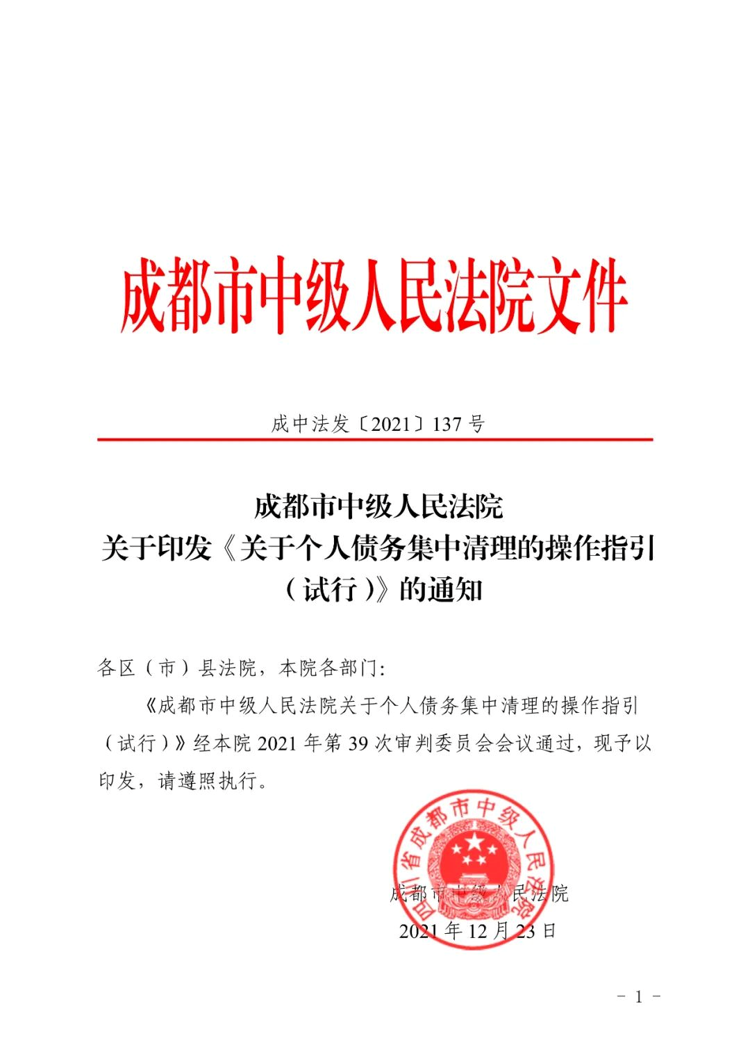 成都中院关于印发《关于个人债务集中清理的操作指引(试行)》的通知